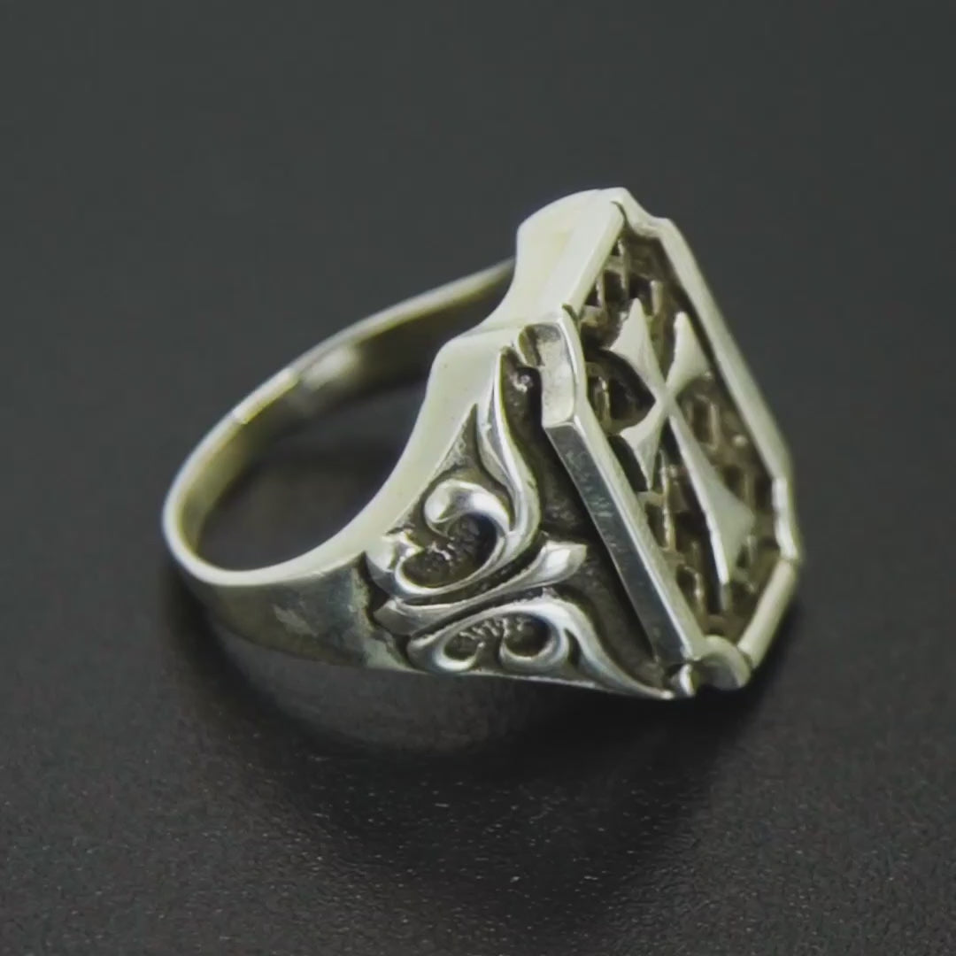 Uma declaração de fé e força. Para homens que buscam uma joia que reflita seus valores, este anel de prata com crucifixo é a escolha perfeita. O crucifixo, símbolo universal de força e esperança, representa a superação de desafios e a conexão com o divino. Um acessório masculino que transmite confiança e virilidade, sem abrir mão da espiritualidade. Use-o como um lembrete constante de sua fé em sua jornada. Este anel é feito de prata de alta qualidade, garantindo durabilidade e brilho duradouro. Características: